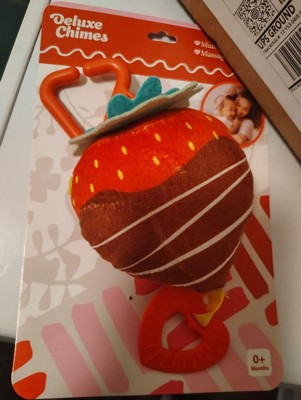 [This review was collected as part of a promotion.] Perfect little chocolate covered strawberry for my little teething peanut! Easy and soft to grab and hold onto when in need. Lots of use little chime inside to keep them going!