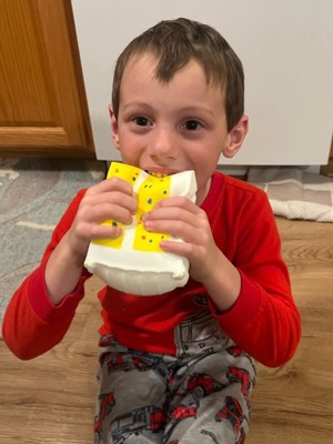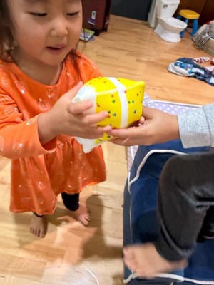 [This review was collected as part of a promotion.] Who doesn’t love a confetti cake slice in pretend play. I love that it doubles as a soothing sensory squishy toy that feels like a soft play doh molding and moving around. This toy reminds me of childhood and putting dough in balloons. This is a fun little addition to our play kitchen area and the kids love to squeeze it with their hands.
