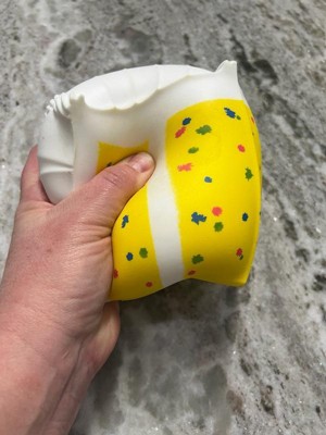 [This review was collected as part of a promotion.] I received this squeeze cake from Squeeezy and Influenster go red my review. My kids and I were really excited about ghosting toy. And we were pretty disappointed by this product. The cake starts off adorable with painted on frosting and sprinkles. By the end of the first day the frosting and sprinkles were gone. It looked so dirty.. The texture felt amazing. And my kids had a blast playing with it. I wish that the coloring held up longer than a day.