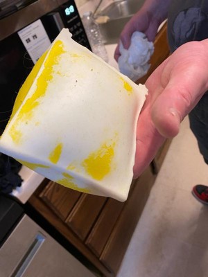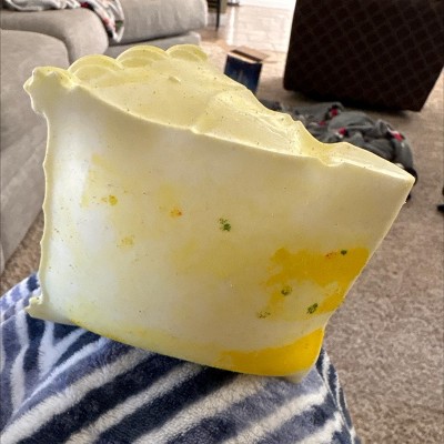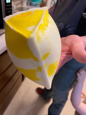Love the unique texture. Fun to squeeze. However, it’s been less than a day and all the paint/design is gone. The white part is pale yellow. You can still squeeze it, but the coloring is gone.