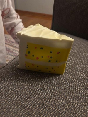 [This review was collected as part of a promotion.] This piece-of-cake squeeze toy is slow-rising, smells fine, and is super satisfying to squish. Bright colors, good quality, and perfect for stress or fidgeting. Great little buy.