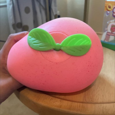 We love this squishy. Be aware that the peach stem will likely fall off fairly quickly (ours lasted a few days and that’s it), and the speckles on the peach will also fade after a couple days, but it’s still a ton of fun!