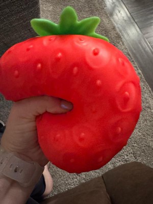 [This review was collected as part of a promotion.] This squishy strawberry is so much fun! The outside isn’t sticky like some of the toys like this are, it’s really smooth and doesn’t pick up every piece of dirt in your house. The squishiness is oddly satisfying, and it slowly goes back to its original shape like should.