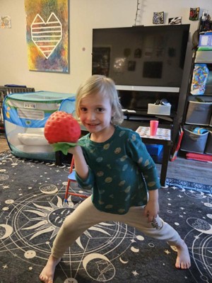 [This review was collected as part of a promotion.] The color is really bright, and the texture feels perfect my kids are in love with this strawberry feels good and is very easy to handle everywhere!