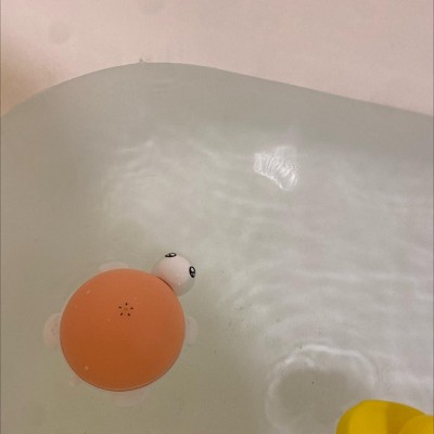 [This review was collected as part of a promotion.] Cute little turtle that lights up and sprays water life a fountain. A fun addition to bath time and splashing in the pool. Only requires three AAA batteries. I did struggle a bit to get the battery compartment open but that just proved it has a great watertight seal. The sound of the motor itself is not loud and does not drown out the relaxing splash of the fountain. The light just flashes on one pattern and does not change hue. Also there is no on/off switch. It conveniently starts automatically when placed in the water and turns off when removed. I do wish it had Bluetooth speaker capabilities too. But one last cool thing is that it doesn’t remain stationary in still water. It floats all around and puts on its own little show.