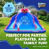 The fast-inflating instant playground includes a central climbing wall with durable fabric handles and foot holds, as well as two fun water slides leading down either side into a splashdown pool. Kids will love the large integrated water blaster, letting them soak their friends as they climb up or take their turns coming down the slides (or their parents watching from the sidelines—watch out!). They'll pass through a shower from the water sprayers above the slides, which also serves to keep it cool and moist during play.
