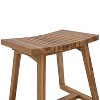 Built for elegance, this oiled teak shower stool for inside the shower delivers reliable function with a high-end spa aesthetic. Measuring 19" W x 12.75" D x 18" H, it features a gently curved seat crafted for ergonomic comfort and a compact, stable frame that fits seamlessly into a wide range of environments. Constructed from sustainably sourced premium teak and reinforced with galvanized steel hardware, the small bathroom table resists rust and handles moisture with ease. Its oiled finish enhances the water resistance while bringing out the natural richness of the wood grain, contributing to a timeless and inviting appearance. Capable of supporting up to 325 lbs, it offers sturdy, balanced seating, while anti-slip rubber feet and a smooth finish reduce the risk of slipping and snagging. Whether placed in a bathroom, on a patio, or in a garden, this bench adapts to both indoor and outdoor settings. The bench requires no assembly. It’s also low-maintenance, air drying and occasional reapplication of teak oil are all that’s needed to retain its original finish and character. Designed for daily use, it balances aesthetics, functionality, and peace of mind in every setting.