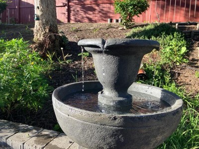 [This review was collected as part of a promotion.] This fountain is beautiful. It went together super fast and was very easy to set up. It looks like concrete but is super light. You do need to make sure it is level for the full effect and the water sound is on the loud side. I have it set up on my porch right now but will be moving to my garden when it warms up enough to clean up a location. I would definitely buy another fountain from sunnydaze. It is a perfect water element for any garden.
