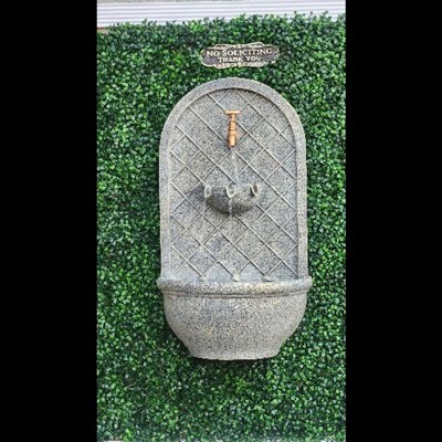 This Messina wall fountain will add a touch of style to the garden or patio. Enjoy the soothing sounds of water gently flowing from the spigot where it then splits into 3 separate streams that softly fall into the basin below where it circulates back to the top via the submersible electric pump. Made with polystone material, these fountains are made to last against harsh weather conditions like rain, snow, and sun while staying stylish with a stone-like appearance. Assembly is also quick and easy. Just hang this wall feature, plug it into a standard electrical outlet, and enjoy! This outdoor wall fountain can be mounted on siding or brick outside any home to create a relaxing scene. Add a touch of polished serenity to your garden, patio, pillar, or any outdoor wall in need of a beautiful focal point.
