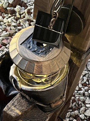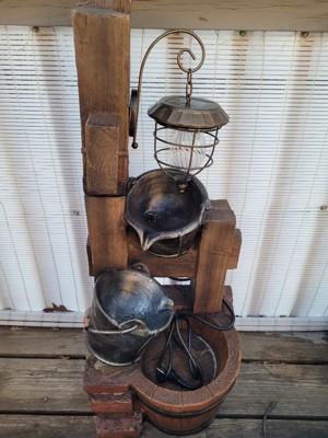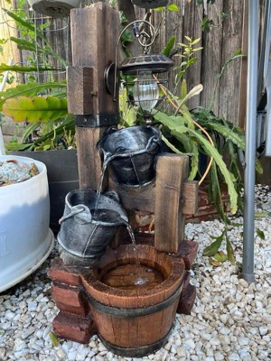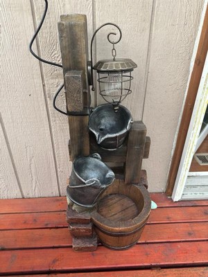 Sunnydaze 34"H Electric Polyresin Rustic Pouring Buckets Outdoor Water Fountain with Solar Lantern