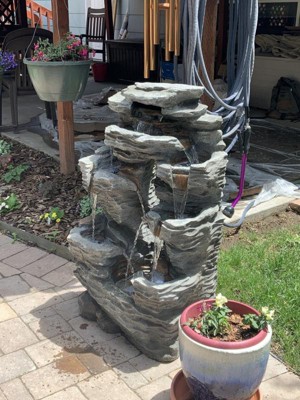 Sunnydaze 39"H Electric Polyresin and Fiberglass Dual Cascading Falls Outdoor Water Fountain with LED Lights