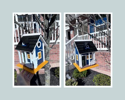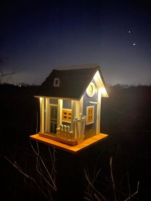 [This review was collected as part of a promotion.] We have been looking for a great looking birdhouse for our backyard and this came to our attention. The colors are vibrant and the light feature makes it look like a real house. I am excited to see what bird takes home to it and lays its eggs. There is a light inside and a little door that allows you to look on the side as to what is inside!
