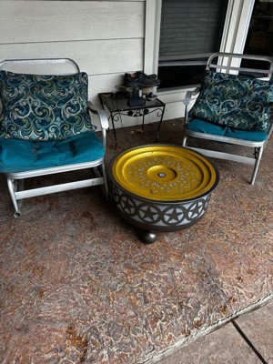 Create a unique centerpiece in the garden, patio, or backyard with this unique bowl fountain. This striking outdoor water fountain is made from sturdy galvanized iron to resist the elements and provide classic style and beauty season after season. This garden fountain features a dramatic bowl design with a repeating star pattern around the water feature. This beautiful fountain is the right size for an outdoor patio, deck, or garden. The bold, western-inspired pattern is clearly visible both during the day and at night thanks to the interior LED lights. The fountain will cast a warm glow over the patio or garden. The calming bubbling sound and movement of the water will soothe away all cares and troubles. Thanks to the included electric submersible pump, the water will continuously circulate through the fountain. There is no complex plumbing or advanced installation required. Simply plug the fountain into a standard electrical outlet and it's ready to go.