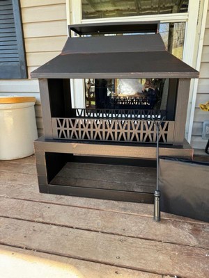 Sunnydaze Backyard Blaze Heavy-Duty Steel Outdoor Fireplace - Built-In Log Storage and Protective Cover - 35-Inch H - Brushed Bronze