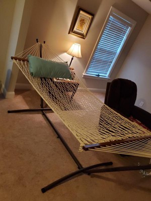 I purchased this hammock stand for the hammock I bought on a trip to Costa Rica and couldnt be happier with my purchase! I now get to have a touch of paradise whenever I want, in my own backyard<3