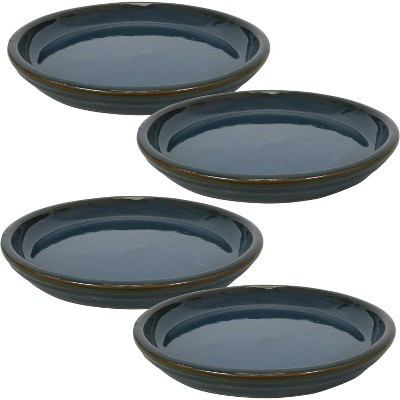 Sunnydaze Ceramic High-Fired Glazed UV-Resistant and Frost-Resistant Outdoor Flower Planter Saucers - 12" Diameter - Forest Lake Green - 2-Pack