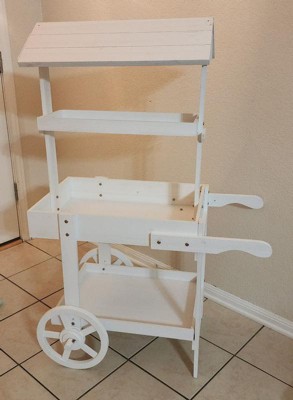 • GREAT FOR WEDDINGS, GARDENING AND CRAFT FAIRS: This elegant decorative garden cart can be used in a variety of places to display flowers, party favors, and crafted items. The two front wheels give this party cart a unique, playful look. Please note, the wheels are for decorative purposes only. Empty all tiers before attempting to move the cart.