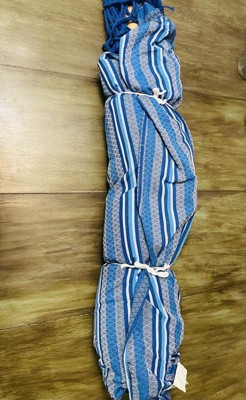 Add a comfortable place to relax on the patio, porch, deck, or backyard with this hammock chair swing. This hanging hammock chair features a cushioned seat and a soft back for extra comfort while enjoying an evening on the patio watching the sunset. The beautiful blue hues of the soft fabric are sure to complement any outdoor decor style. The spreader bar is made from strong beech wood, and the chair cover is made from durable polyester with a polyurethane foam fill and can support up to 265 lbs. Hang this chair from a hammock chair stand (stand not included), a supportive beam on the porch, or a tree branch to enjoy some quiet reading time or conversation with friends and family. Please note, no hanging hardware is included with this hammock chair. Whether enjoying a cup of coffee in the morning or unwinding in the evening, this comfortably hammock chair is sure to be a new favorite relaxation place.
