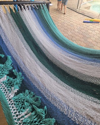 [This review was collected as part of a promotion.] Holy comfort! We drilled some hooks into the columns on our back patio to hang this double hammock for a great poolside lounge. The fabric Sunnydaze chose to produce this hammock is so satisfying to lay on. It is a thick thread, yet it breathes incredibly well. The design is perfect for the pool setting with light shades of greens and blues. This truly is the perfect hammock. A wonderful product from Sunnydaze, A++