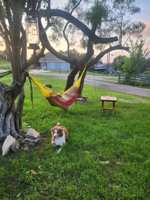 Thank you for sharing your photo of your new Mayan Family Hammock. We are pleased to hear that you and the family are enjoying the new hammock. Thank you for taking the time to leave a review! Please do give our team a call at 833-982-1977 if you need to discuss anything further!