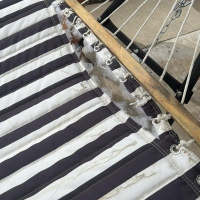 We’re so sorry to hear about your experience with the quilted hammock. That’s definitely not the quality or durability we aim to provide, and we understand how frustrating it must be to have it fade and tear so quickly — especially with such limited use. We’d really appreciate the chance to make this right. Please reach out to our customer support team at 833-982-1977 with your Target order details, and we’ll be happy to assist with a solution that works best for you. Thank you again for bringing this to our attention!