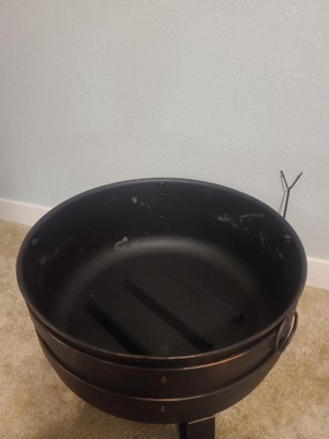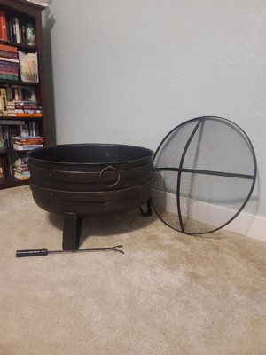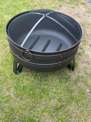 Sunnydaze Heavy-Duty Steel Cauldron Fire Pit with Spark Screen and PVC Protective Cover - 28.5-Inch Round - Brushed Bronze