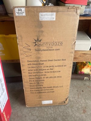 Sunnydaze Hot Dip Galvanized Steel Raised Garden Bed with Mesh Shelf - Set of 2 - Brown