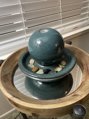 Sunnydaze Indoor Home Decorative Smooth Glazed Ceramic Orb Tabletop Water Fountain Feature - 7" - Teal