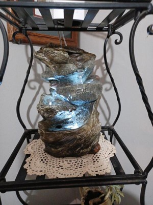 Sunnydaze Indoor Home Decorative Tiered Rock and Log Waterfall Tabletop Water Fountain with LED Lights - 10"