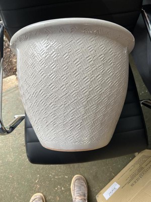 Sunnydaze Ocean Villa Decorative Glazed Ceramic Outdoor Planter for Greenery or Flowers - 15" - Pearl