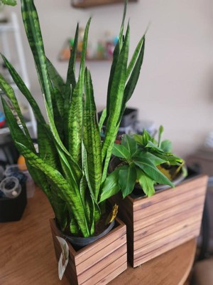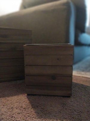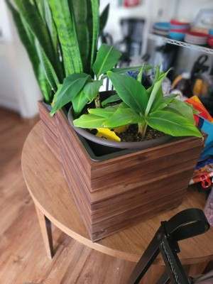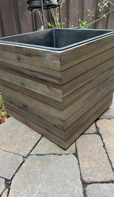 [This review was collected as part of a promotion.] I was so excited for these planters to arrive. I love that they are wood and have a removable plastic liner that is easy to clean. They look even better in person, very pretty, simple and chic. The stain on acacia wood is a beautiful brownish grey. It is sturdy and very well made. The liner is thick and removes easily. Unfortunately, the liner in the large pot arrived cracked and the smaller one sits lopsided. It’s very disappointing. Hopefully I can get this taken care of, because they are so pretty and would look great on my front porch.
