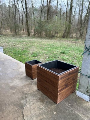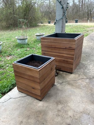 Sunnydaze Indoor/Outdoor Square Acacia Wood Planter Box with Plastic Liner - 2pk