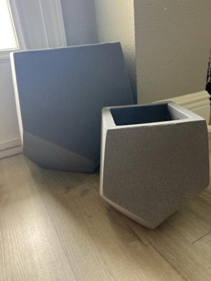 • ABSTRACT DESIGN: The gray planters feature a unique cut with elongated edges to create an abstract look. Instantly add a modern touch to any living space by planting flowers or greenery in the planters and placing them on a plant stand (not included) or the ground.