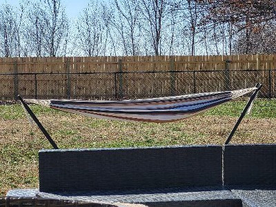 - Double hammock with stand holds up to 450 lbs