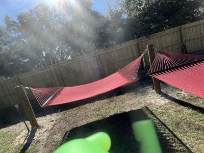 [This review was collected as part of a promotion.] We discovered these hammocks while on vacation this spring. Since then we have ordered two of them! Love the red color and the size is perfect for the two of us. Customer service is great, thank you!