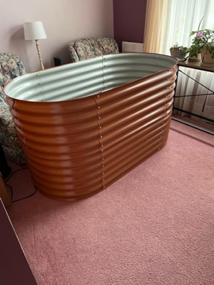 Sunnydaze Large Oval Steel Raised Garden Bed - Stand-Up Height - 62.5" W x 32" H - Brown