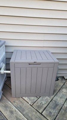 [This review was collected as part of a promotion.] The Sunnydaze Small Deck Box with Storage and Lockable Lid - 32 Gal. is an outdoor deck storage box that can be used to store patio cushions, pillows, garage tools, pool toys, and more. It has a woodgrain design and is made from polypropylene resin that is weather-resistant and UV-protected. The lid is lockable to protect the items stored inside the box. It has a 32-gallon storage capacity and measures 21 inches in height and 22 inches in width. It is very easy to assemble, and it is of great quality. It is spacious for 32 gallons. I kept in my room for storage, too.