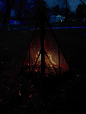 [This review was collected as part of a promotion.] This is great fire pit, i really like the unique design and good size for my place. You don't need to worry this one fall in the windy day cause the heavy duty steel outside. This very easy to install also. The design make the wood inside safe and keep the sparks not flying around, keep warm enough for outdoor.
