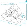 - • HOLDS UP TO 6 BOTTLES: This convenient tabletop wine rack adds a space-saving and attractive feature to any room in the house. Featuring 6 spots to hold red or white wine, this rack measures 19” W x 7.75” D x 13.25” H overall and weighs 3 lbs. This rack has an overall weight capacity of 15 lbs with each slot holding up to 3 lbs. Each storage slot has dimensions of 5.5” W x 5.5” H.