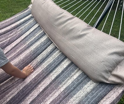 I would love to write a good review, however I have not been able to use my hammock yet. My husband purchased this for my birthday and when I went to set it up we realized they did not include the hanging chains and s-hooks. So today the chains arrived and guess what...still can't use because they chains are not long enough. Really disappointed that I will not be able to use for my birthday.