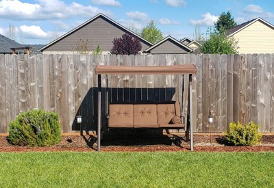 The Sunnydaze Three Person Brown Swing has been a pleasure to use and a nice addition to our backyard.