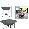 Spend beautiful, summer evenings gathered around a crackling, wood fire with this rustic, cast iron fire bowl with an included stand. Portable and lightweight, this fire pit bowl and stand are great accents to take along on the next camping trip or beach excursion. This fire pit bowl is constructed of fire-resistant cast iron for strength, durability, and resistance to the outdoor elements. The fire bowl sits on top of a stylish yet portable steel stand. This combo is easy to assemble: simply place the fire bowl on top of the stand, add your firewood logs, and enjoy this cozy centerpiece in your yard, on the patio, at the campsite, or any other backyard space. With the open design, easily tend to the fire with a poker or a log clamp (not included) to keep the fire burning all night long.