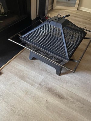 • INCLUDED COOKING GRATE FOR GRILLING: The square fire pit includes a chrome cooking grate that conveniently folds, providing an easy way to grill food or roast marshmallows over an open flame.