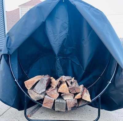 Sunnydaze Outdoor Heavy-Duty Steel Firewood Log Hoop Storage Rack with Weather-Resistant PVC Log Hoop Cover - 24" - Black