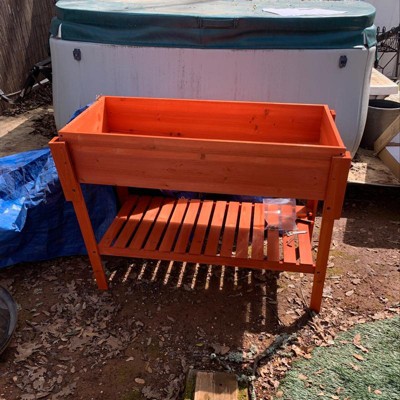 Sunnydaze Outdoor Raised Wooden Garden Bed with Lower Shelf for Flowers, Herbs, Green Plants, and Vegetables - 42" W - Stained Finish
