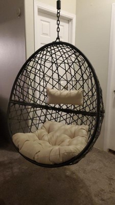 [This review was collected as part of a promotion.] I have been wanting one of these for quite sometime now. I really liked this one, so I picked it out. This one hangs or it can be put on a stand. I didn’t have a stand, so I hung it up. It came with all the necessary hardware to hand it. It was really simple to put together - pretty much the two pieces. The cushions tie on so they stay in place. The cushions are comfortable. I love my new hanging egg chair! Now I just need to get a few more.