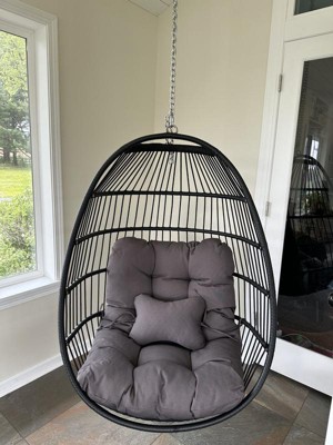 [This review was collected as part of a promotion.] I had always wanted a hanging chair so when we added on a sunroom this year I found this one on line and ordered it. It is very comfortable. We did get a longer chain for the chair as the one that came with it was very short (see photo) and our builder securely anchored it to the ceiling for us.