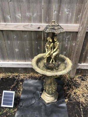 Sunnydaze Outdoor Solar Powered Polyresin Lovers Umbrella Water Fountain with Battery Backup and LED Lights - 43"