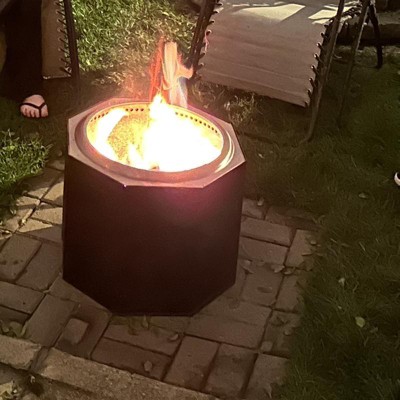 This has been such an awesome buy. I have zero regrets. This size feels like a full bonfire, and it is much easier to light than my old traditional fire pit. It smokes normally until it heats up, so maybe like 10 minutes, then it does truly become virtually smokeless. My partner hated how I would smell tending to our old fire pit, and I never smell like fire anymore. I never need accelerant to get the fire going, usually a little cardboard and a couple dry logs and it takes off into a really satisfying blaze super quickly. I love this thing and so does everyone that sees it. My only problem is that I haven’t figured out how to cleanly remove the ashes. There is a tray below the fire pit but I just haven’t figured out how to get all the ashes out without spilling them on the ground. I would absolutely buy this again. PS: I found a perfect-fit cover for it on a major online retailer’s website for about 20 bucks.