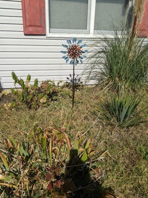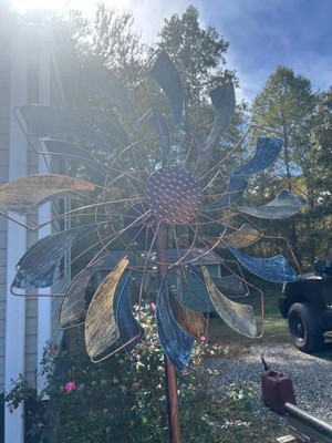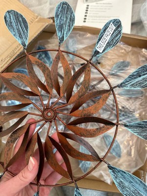 [This review was collected as part of a promotion.] The Sunnydaze whirling petals spinner adds memorizing motion and color to my backyard. Assembly was Fy welds at connection point s. Its weather resistance has proven excellent through rain and sun. The copper and teal colors maintain their vibrant appearance.